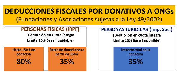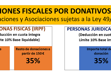 Por tanto, las donaciones a la Asociación de discapacitados físicos “ACREMIF” realizadas por Personas Físicas cuentan con una deducción en el IRPF del 80% en los primeros 150 € y del 35% en el resto de importe donado.